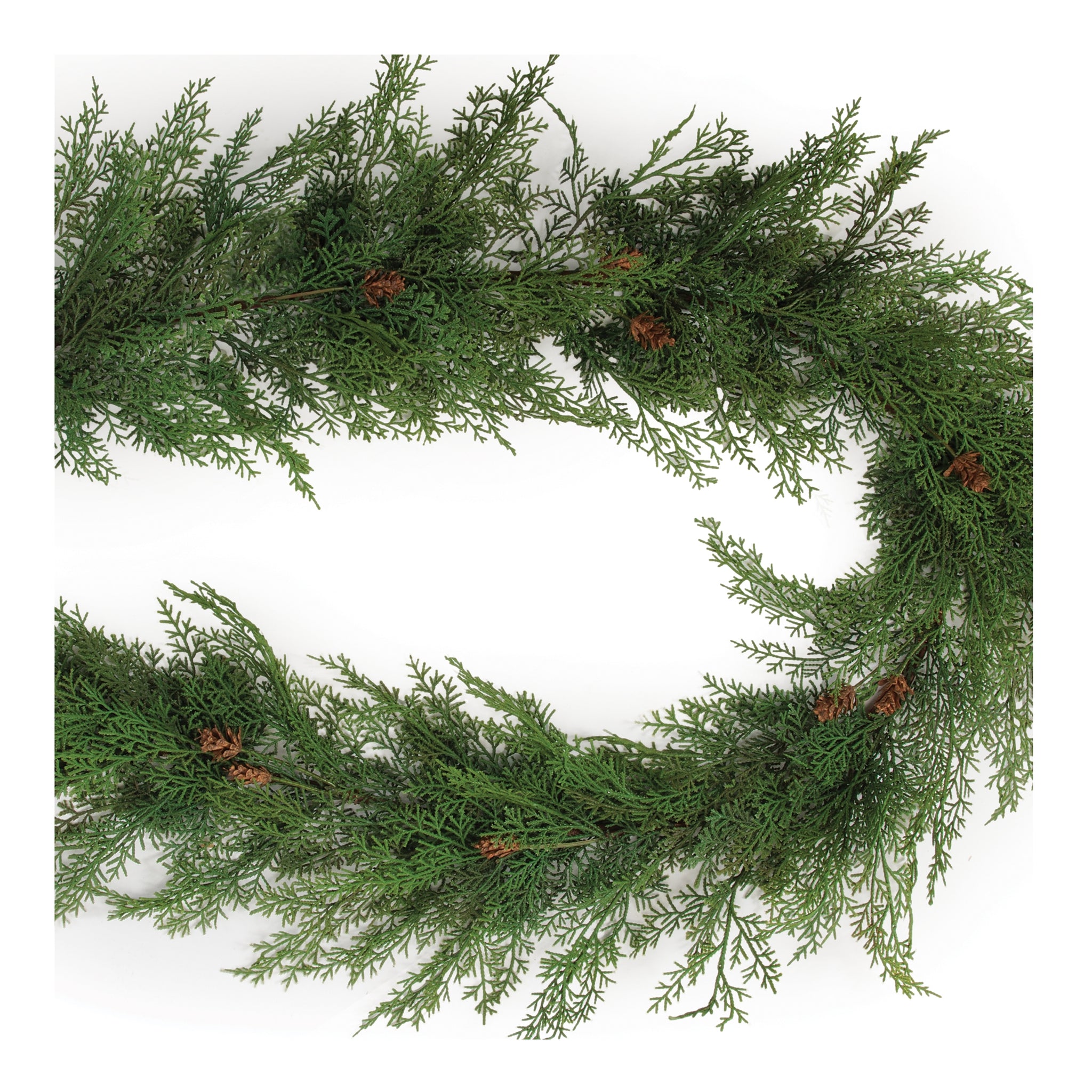 Transform your space with this six-foot forest pine garland, a versatile accent crafted from resilient plastic foliage. Its generous length and full, layered branches create an impressive botanical presence along staircases, railings, or architectural features.