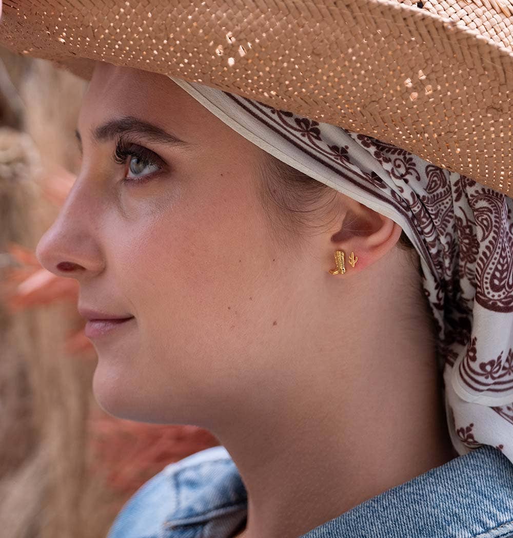These adorable and beautifully rendered saguaro cactus stud earrings are a great addition to any earring stack. The saguaro cactus is native to Arizona and parts of California sto they're great for a desert, western style. They're small enough so as to not crowd their companions.