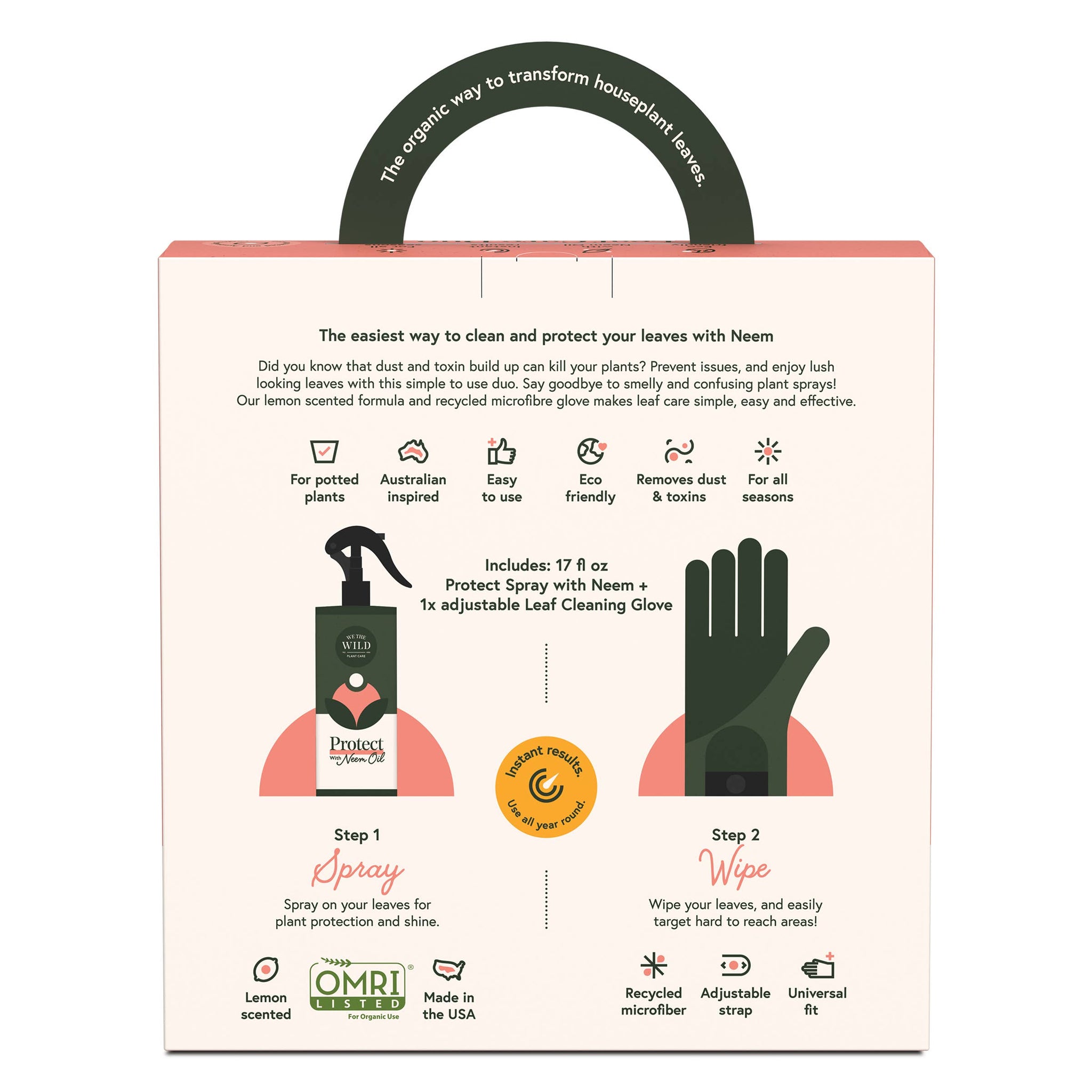 Clean and protect your leaves through all seasons! Our popular Leaf Cleaning Gloves are combined with the best-selling Protect Spray (with Neem) to make leaves shiny, clean, and protected all year round.
