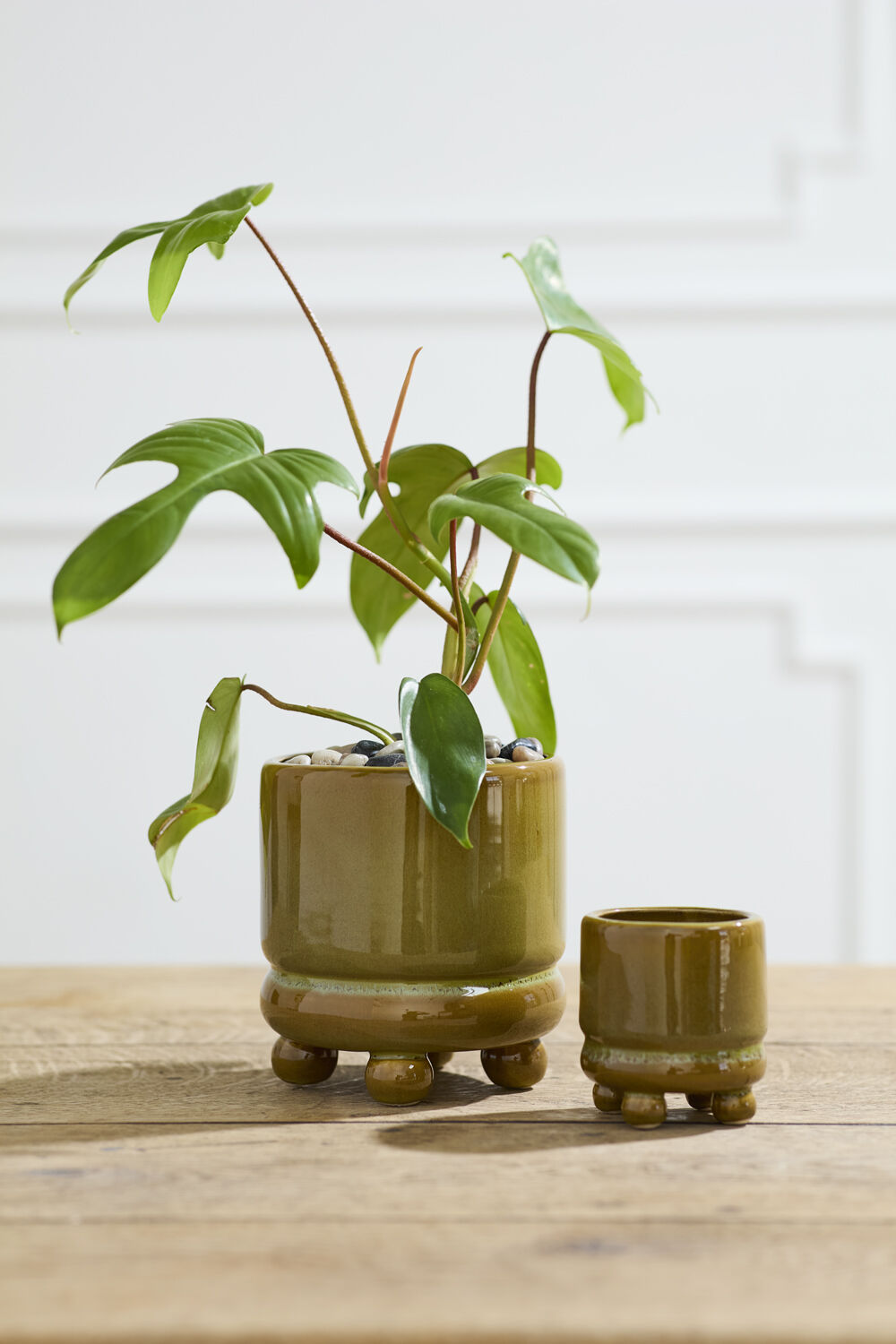With elegant curves, playful ball feet, & a vintage-inspired hue, the small Ferris Footed Pot brings a sophisticated lift to plants & home decor. Featuring a cylinder shape, dimensional ring near the base, slightly rolled lip, & beautiful green reactive glaze, this pot is a charming piece of tabletop art.