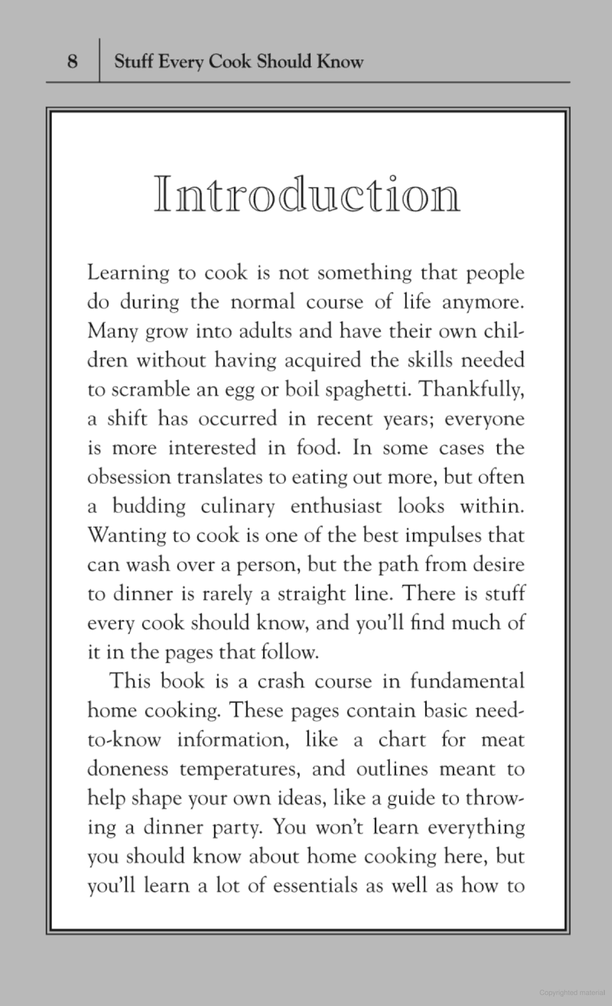 The latest in Quirk's best-selling Stuff series, Stuff Every Cook Should Know is an indispensable reference for any kitchen. With entries on how to make a meal plan, common ingredient substitutions, how to throw a dinner party, tips for organizing a small kitchen, and much more, this book has everything a home cook needs to know. Author - Short: Manning, Joy Pages (actual): 0.