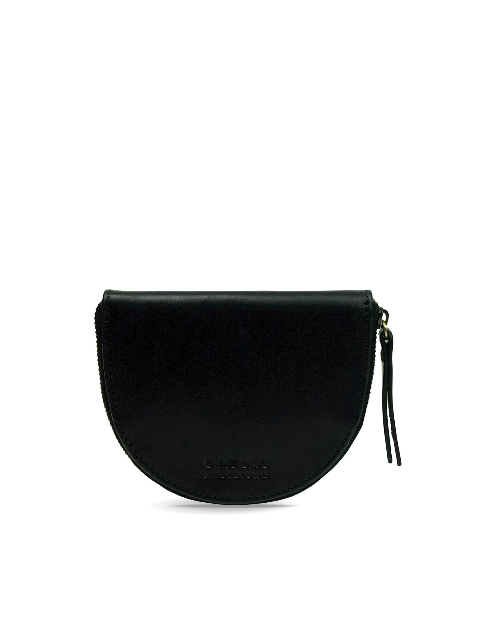 Her compact semi-circle half-moon design holds enough space for cards - she opens to reveal two note compartments and two slots for cards but her top zipper fastening holds your coins as well. Just the right size and shape for all your daily needs.