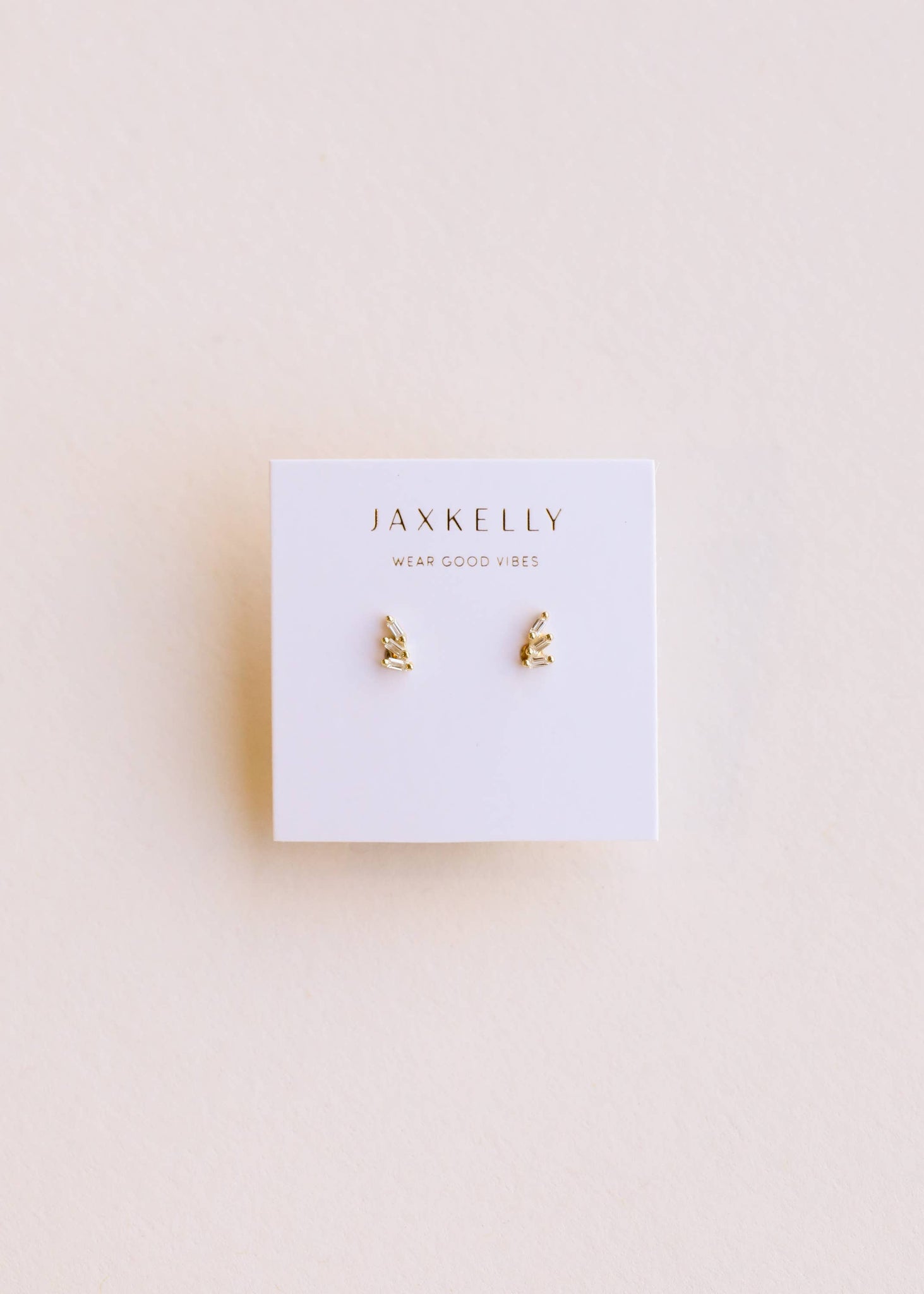 Three white CZ stones are set in a delicate prong, with a slight offset between each stone.