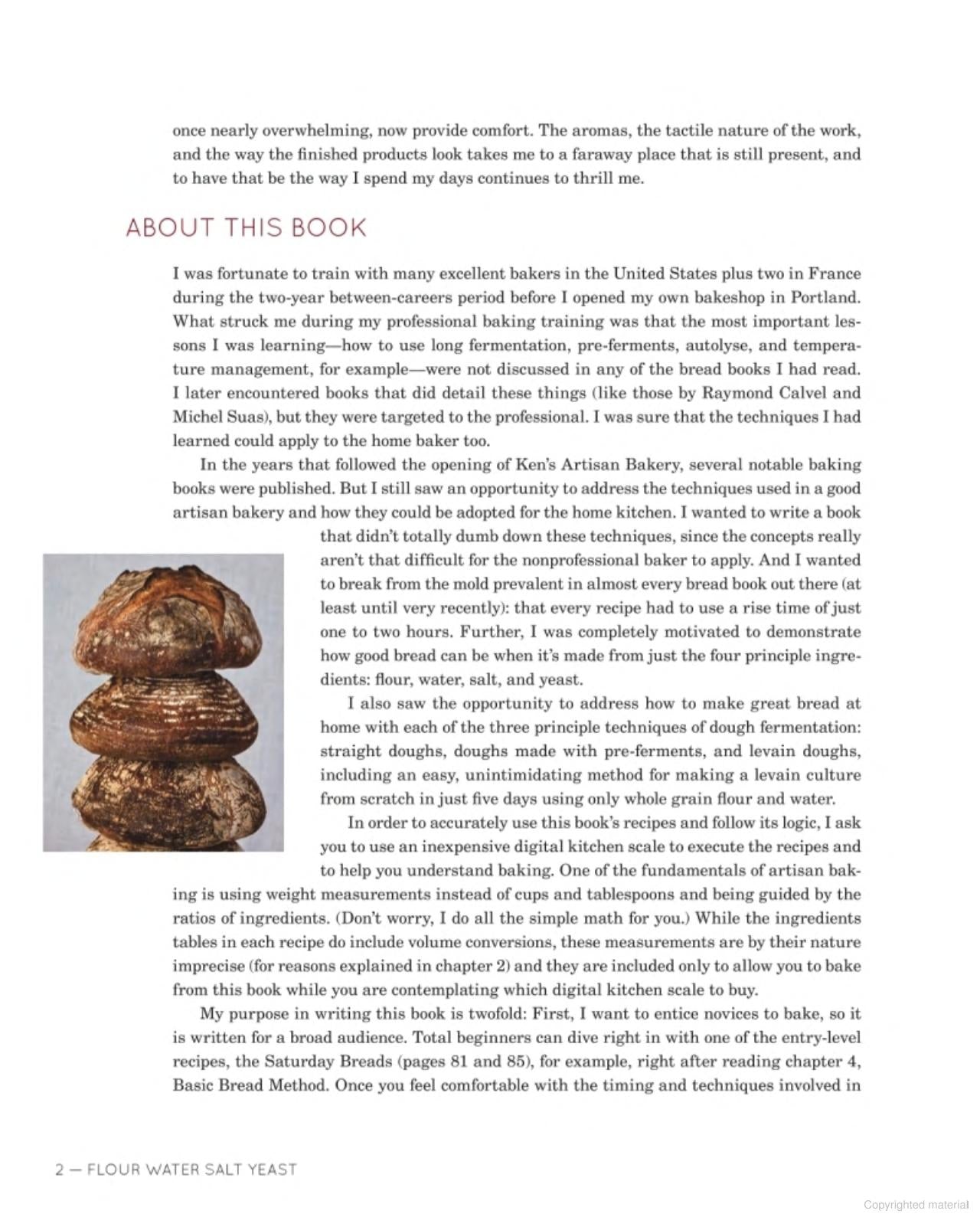 In Flour Water Salt Yeast, author Ken Forkish demonstrates that high-quality artisan bread and pizza is within the reach of any home baker. Whether it's a basic straight dough, dough made with a pre-ferment, or a complex levain, each of Forkish's impeccable recipes yields exceptional results. Tips on creating and adapting bread baking schedules that fit in readers' day-to-day lives--enabling them to bake the breads they love in the time they have available--make Flour Water Salt Yeast an indispensable resource for bakers, be they novices or serious enthusiasts.