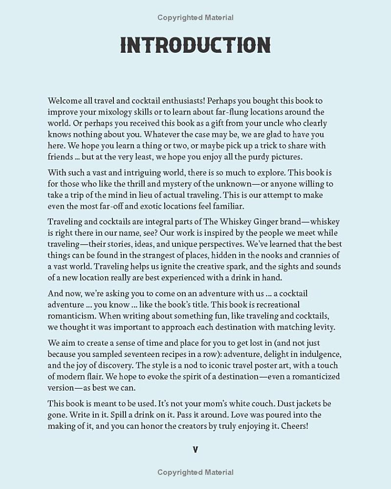 World Cocktail Adventures is a virtual cocktail tour in book form by creative duo Loni Carr and Brett Gramse of The Whiskey Ginger. With a total of 40 unique cocktail recipes featured, each recipe includes easy-to-access ingredients and a variety of spirits. What's the travel twist, you ask? Well, each recipe is inspired by a different destination around the world. You'll get a taste of the place's history and tourist attractions with a vintage-style travel poster to match. Then you'll get the real goods with a fun cocktail recipe, tips on glassware and bartending, and an illustration of the final cocktail. This is a book for cocktail lovers and travel dreamers.