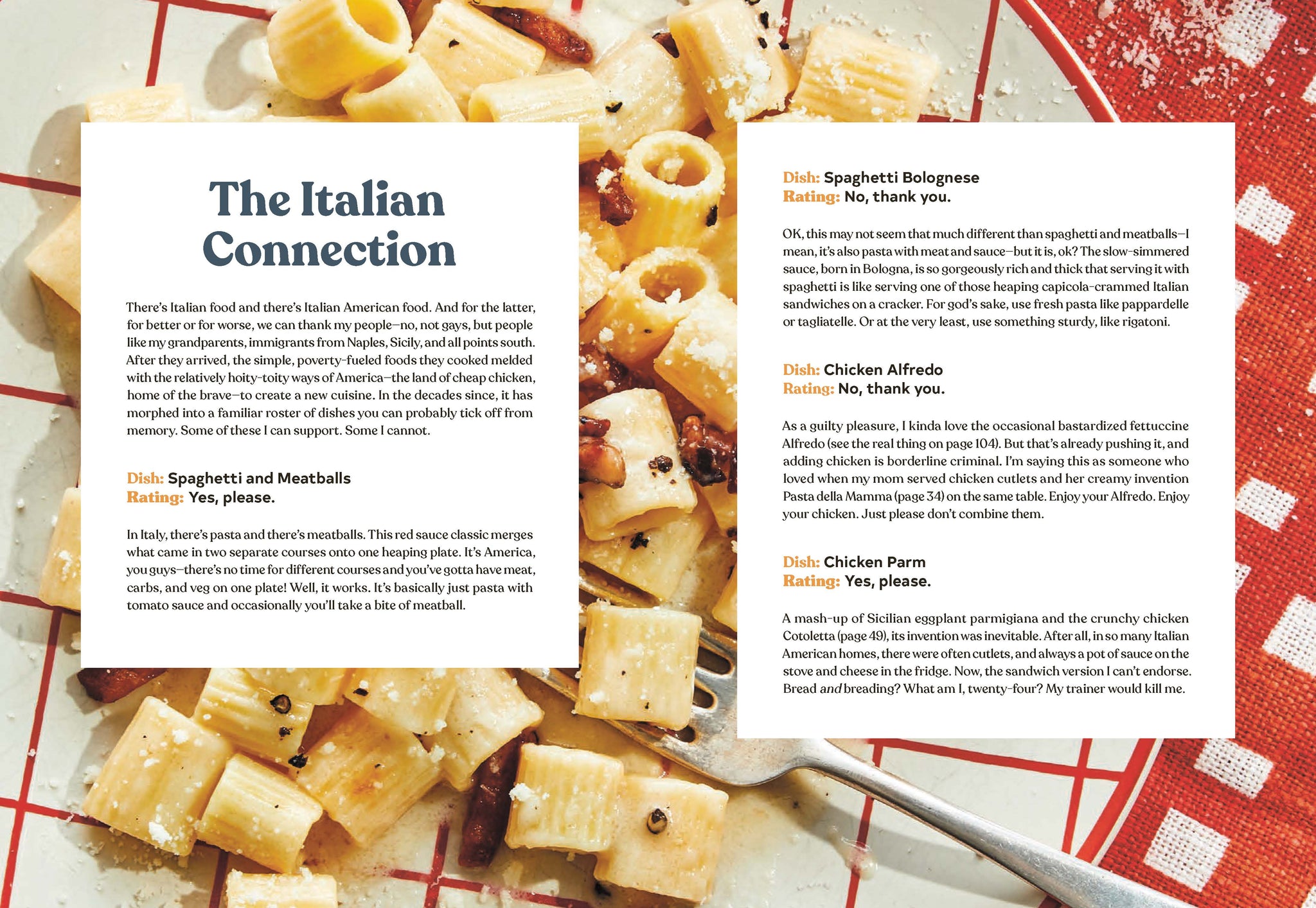 Turn these pages to find: * A conversational recipe (definitely not an argument) with his bestie Nick Smith on their versions of Mac and Cheese. * A short rant over the validity of “alfredo” that turns into a delicious recipe for Penna alla Vodka.